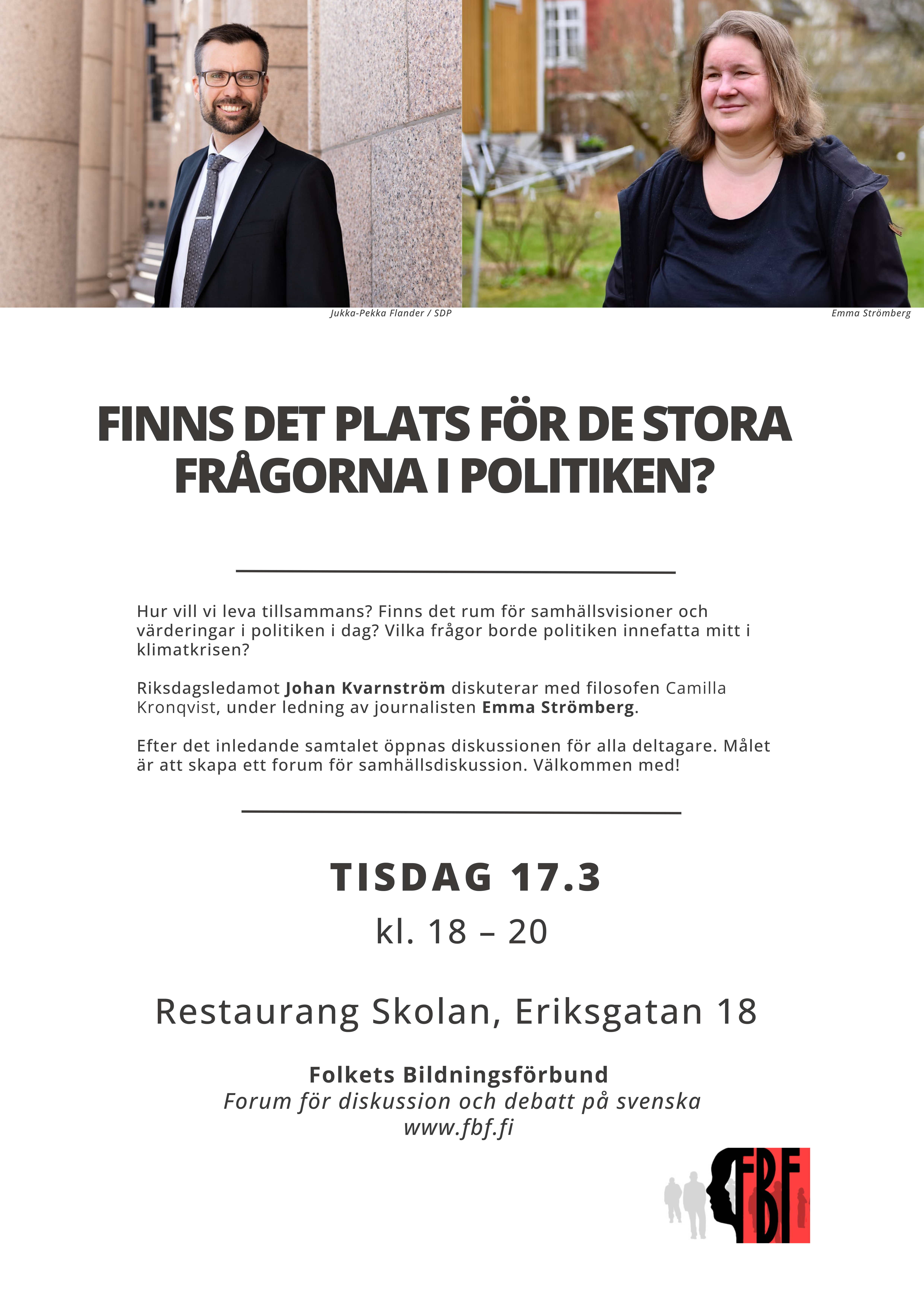 Tid: kl.17.30-19.15 (OBS! före filosoficafét är det en annan grupp i Historiesalen. Filosoficaféts deltagare ombeds att inte gå in förrän den andra gruppen slutat.)